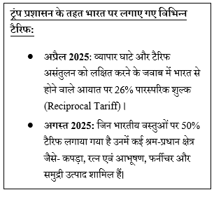 - व्यापार पर प्रभाव: अमेरिका को होने वाले निर्यात पर टैरिफ में 500% की वृद्धि से भारत की व्यापारिक प्रतिस्पर्धात्मकता में कमी आएगी, जिससे विश्व की सबसे बड़ी अर्थव्यवस्था के लिए भारत से होने वाला निर्यात प्रभावी रूप से बंद हो सकता है।