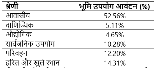 - 23.94 लाख की अनुमानित जनसंख्या के आधार पर, भूमि उपयोग आवंटन में शामिल हैं: