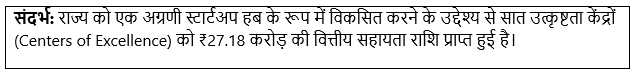- ‘स्टार्ट इन यूपी’ (Start in UP) पहल के अंतर्गत ये केंद्र भविष्योन्मुखी क्षेत्रों जैसे- ब्लॉकचेन टेक्नोलॉजी, मेडिकल इलेक्ट्रॉनिक्स और हेल्थ इंफॉर्मेटिक्स, कृत्रिम बुद्धिमत्ता, 5G/6G टेलीकॉम, एडिटिव मैन्युफैक्चरिंग, ड्रोन तकनीक पर कार्य कर रहे हैं।