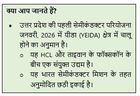 - राजकोषीय प्रोत्साहन: नई मंजूरी के तहत, सेमीकंडक्टर इकाइयाँ 10 साल की अवधि के लिए ब्याज सब्सिडी, शुद्ध SGST में छूट के लिए पात्र होंगी।