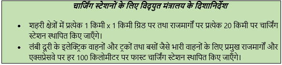 संदर्भ: हाल ही में, सार्वजनिक क्षेत्र की तेल कंपनियों ने उत्तर प्रदेश में इलेक्ट्रिक वाहन (EV) चार्जिंग स्टेशनों के लिए 1,000 से अधिक बिजली कनेक्शन मांग की है, क्योंकि राज्य अपनी विकसित EV नीति के तहत सार्वजनिक और सरकारी स्थानों पर चार्जिंग सुविधाओं का विस्तार करने की योजना को अंतिम रूप दे रहा है।
