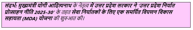 • इस पहल का उद्देश्य सेवा निर्यातकों की वैश्विक पहुंच का विस्तार करना और भारत के सेवा व्यापार में उत्तर प्रदेश की भूमिका को सुदृढ़ करना है।