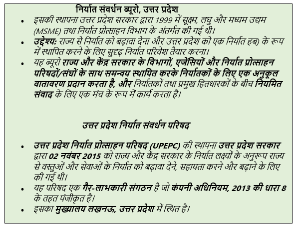 • उत्तर प्रदेश निर्यात संवर्धन परिषद