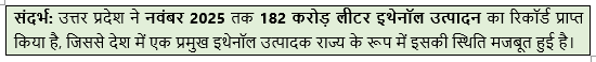 - इसमें से 105.25 करोड़ लीटर राज्य के भीतर बेचा गया, जबकि 40.96 करोड़ लीटर अन्य राज्यों को आपूर्ति किया गया, जिससे यूपी बायोफ्यूल के एक महत्वपूर्ण सप्लाई हब के रूप में स्थापित हुआ।