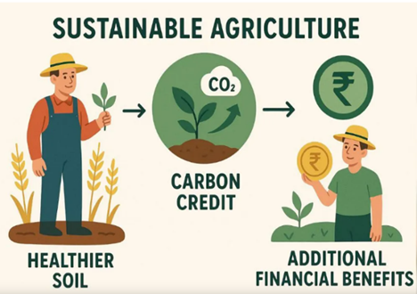 - न्यूनतम जुताई, कवर क्रॉपिंग, अवशेष प्रबंधन, कृषिवनिकी (agroforestry), और बेहतर जैव-उर्वरक उपयोग जैसी सतत कृषि प्रथाओं को वैज्ञानिक रूप से मापा जाएगा और इस प्रणाली की मदद से सत्यापित कार्बन क्रेडिट में परिवर्तित किया जाएगा।