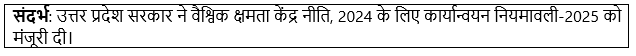 - नियमावली में इन्वेस्ट यूपी (Invest UP) को GCC नीति के कार्यान्वयन के लिए नोडल एजेंसी के रुप में नामित किया गया है।