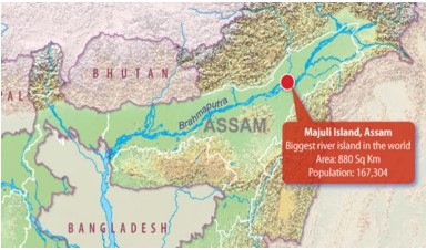 - यह विश्व का सबसे बड़ा नदी द्वीप है, जो असम राज्य में महान ब्रह्मपुत्र नदी के बीच में स्थित है।