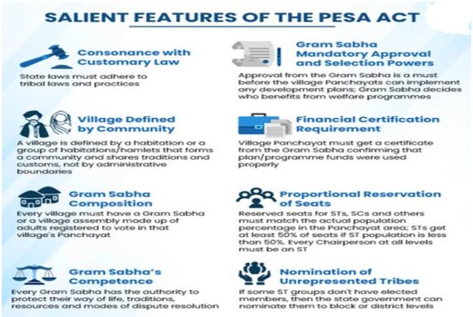 • आदिवासियों के अधिकारों को मान्यता: इस कानून के लागू होने से पारंपरिक कानूनों के तहत काम करने वाली आदिवासी ग्राम सभाओं के पारंपरिक अधिकारों और कर्तव्यों को संवैधानिक मान्यता मिलेगी।