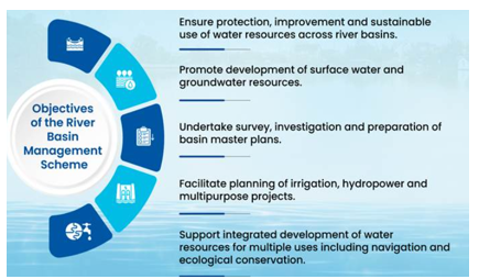 - यह योजना बेसिन स्तर पर जल संसाधन नियोजन और विकास से जुड़ी विविध चुनौतियों का समाधान करने के लिए शुरू की गई है।