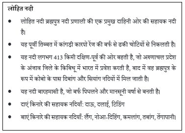 संदर्भ: हाल ही में, केंद्रीय पर्यावरण मंत्रालय की एक विशेषज्ञ समिति ने अरुणाचल प्रदेश के अंजाव जिले में लोहित नदी पर 1,200 मेगावाट की कलई-II जलविद्युत परियोजना के लिए पर्यावरण मंजूरी की सिफारिश की है।