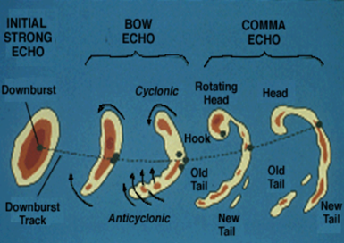- ” धनुषाकार प्रतिध्वनि” या “वक्राकार रेखा खंड” तूफानों की एक धनुषाकार/वक्राकार रेखा होती है, जो कभी-कभी स्क्वॉल लाइन (तूफानी रेखा) के भीतर अंतर्निहित होती है।