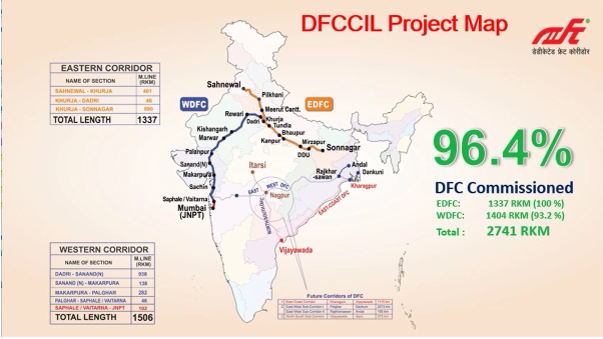 - रेलवे दो DFC का निर्माण कर रहा है।