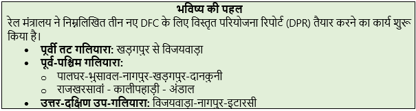- भारत में DFC की अवधारणा पहली बार वित्तीय वर्ष 2005-06 के दौरान शुरू की गई थी।