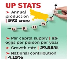 पिछले वर्ष लगभग 30% वृद्धि दर्ज किए जाने के बावजूद राज्य अब भी अपनी दैनिक आवश्यकता के आधे से कम अंडों का उत्पादन कर पा रहा है।
