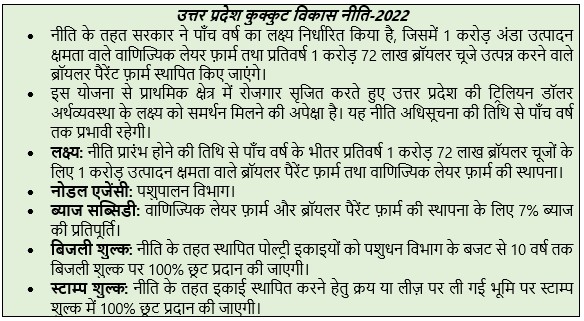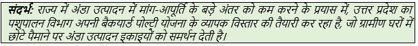 अंडों के प्रसंस्करणको बढ़ावा देना: प्रसंस्करण इकाइयाँ स्थापित करने के लिए इन्वेस्ट यूपी पोर्टल पर पंजीकरण कराने पर राज्य की खाद्य प्रसंस्करण नीति के तहत 35% की सब्सिडी प्रदान की जाएगी।