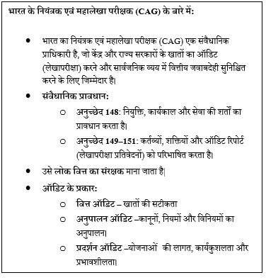 - डिजिटल एकीकरण: पहुँच और उपयोगिता बढ़ाने के लिए, ‘राज्य वित्त 2023-24’ प्रकाशन के साथ इंटरैक्टिव डैशबोर्ड और डेटा विज़ुअलाइज़ेशन टूल भी उपलब्ध कराए गए हैं, जो CAG की वेबसाइट पर देखे जा सकते हैं।