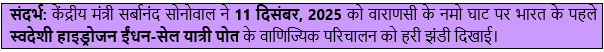 • इस पोत के परिचालन के साथ, भारत अब चीन, नॉर्वे, नीदरलैंड और जापान जैसे उन देशों की सूची में शामिल हो गया है जो हाइड्रोजन-संचालित पोतों का संचालन करते हैं।