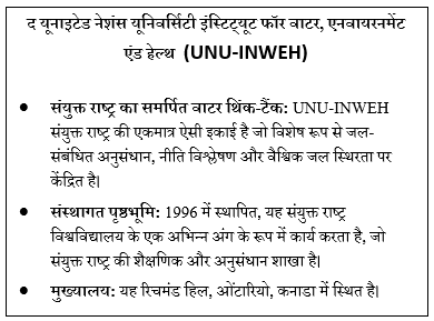 - जल विमर्श में वैचारिक परिवर्तन: यह औपचारिक रूप से “ग्लोबल वाटर बैंकरप्सी ” की अवधारणा प्रस्तुत करता है, जो जल तनाव या संकट की परिवर्तनीय धारणाओं से आगे बढ़कर प्राकृतिक जल पूंजी की अपरिवर्तनीय क्षति को उजागर करता है।