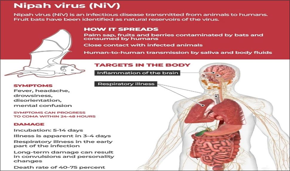 • 2001 (सिलीगुड़ी) और 2007 (नदिया) के बाद पश्चिम बंगाल में निपाह (वाहक हेनिपावायरस निपाहेंस) का यह तीसरा प्रकोप है।