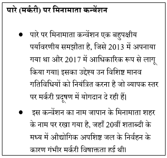 - यह निर्णय पारे पर मिनामाता कन्वेंशन के 153 पक्षों द्वारा अपनाया गया था।