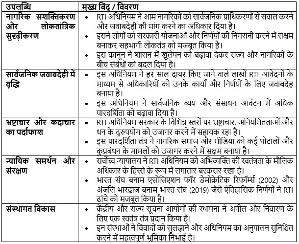 RTI अधिनियम की प्रमुख उपलब्धियाँ