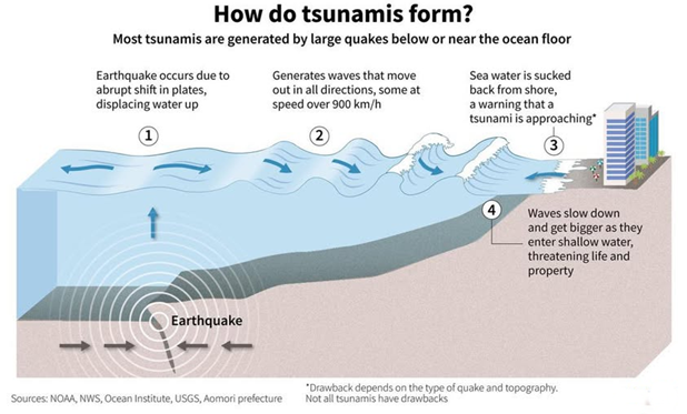 • Volcanic eruptions, submarine landslides, and coastal rock falls can also generate a tsunami, etc, impacting the ocean.