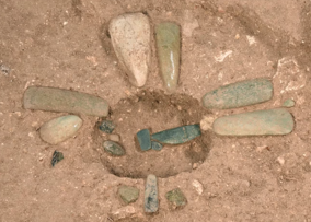 • Pigments found in the pits correspond to the four cardinal directions – north (Bright blue azurite), south (yellow ochre), east (green malachite), and west (pearly seashells) – and are believed to be the oldest-known examples of such directional colour symbolism in Mesoamerica.
