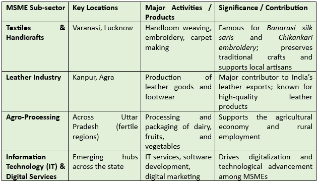 - MSMEs in UP provide employment to over 14 million people and the export-oriented nature of many MSMEs has significantly boosted the state’s foreign exchange earnings.
