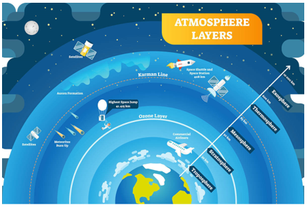 - It exists in the Stratosphere (a layer of Earth’s atmosphere), between 10 KM and 40 KM above the Earth’s surface and protects us from UV radiation from the Sun.