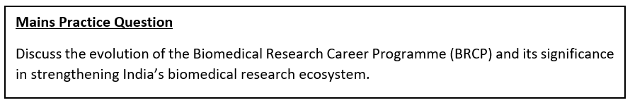 Recently, the Union Cabinet has approved Phase III of the Biomedical Research Career Programme (BRCP) to strengthen India’s biomedical research ecosystem.