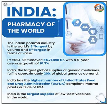 • The announcement also responds to global trade uncertainties, including high tariffs on patented pharmaceutical imports, highlighting the need for India to move up the pharmaceutical value chain beyond generics.