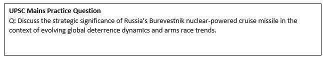 - The Burevestnik forms part of Russia’s advanced nuclear arsenal alongside the Poseidon nuclear torpedo, strengthening its second-strike and strategic deterrence capabilities.