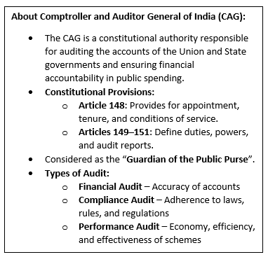 Context: Recently, CAG released the second edition of the Publication on State Finances 2023–24, presenting a consolidated, audited overview of the finances of all 28 States, which will enable inter-State and inter-temporal analysis over a 10-year period from 2014-15 to 2023-24.