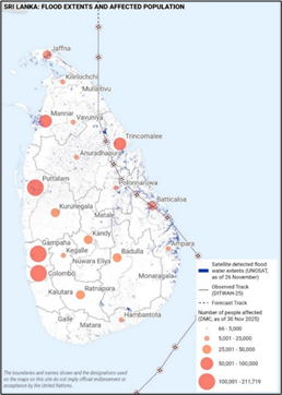 • The cyclone Ditwah made landfall in Sri Lanka on 28th November, before moving back over the Bay of Bengal.