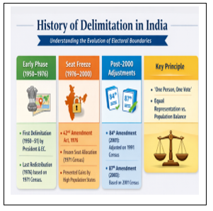 - Delimitation refers to the exercise of determining the number of seats and redrawing the boundaries of territorial constituencies for the Lok Sabha and State Legislative Assemblies.