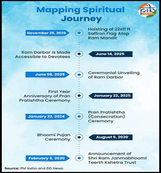 The Prime Minister of India hoisted the saffron flag atop the 191-foot-high ‘shikhar’ of Ayodhya Ram Temple on November 25, 2025.