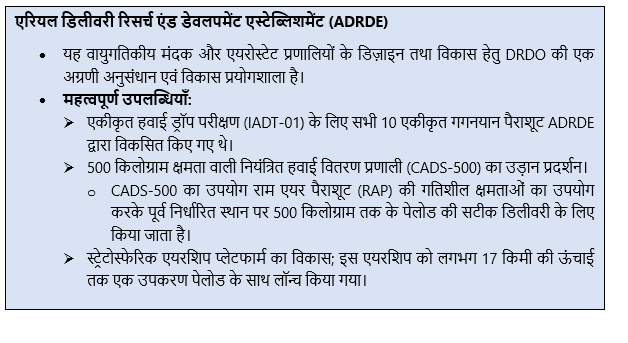 संदर्भ: DRDO द्वारा स्वदेशी रूप से विकसित एक सैन्य लड़ाकू पैराशूट प्रणाली का 32,000 फीट की ऊँचाई पर “सफलतापूर्वक” परीक्षण किया गया है, जिससे स्वदेशी पैराशूट प्रणालियों को शामिल करने के रास्ते खुल गए हैं।