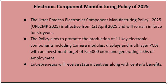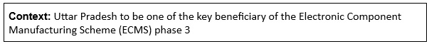 - UP got the approval of 4 projects under Electronic Component Manufacturing Scheme (ECMS).