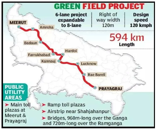 - Connectivity: It will start from village Bijoli in district Meerut and will terminate at JudapurDandu village in district Prayagraj.