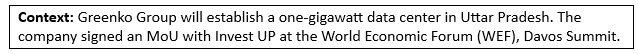 • To promote clean energy, the UP delegation also signed an MoU with INOXGFL Group, to establish a 2-gigawatt solar energy project and a 3-gigawatt solar module manufacturing unit.