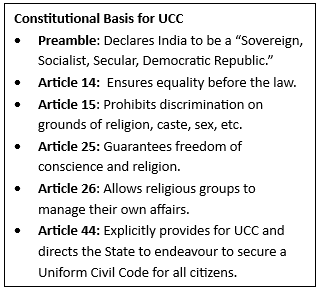 Context: Recently, the Gujarat Assembly passed the Uniform Civil Code (UCC) Bill, becoming the second state after Uttarakhand to adopt the UCC.