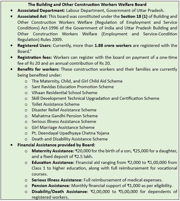 Context: Recently, the Uttar Pradesh government has announced a revision in the financial benefits under the Kanya Vivah Sahayata Yojana, a marriage scheme for daughters of workers registered with the Building and Other Construction Workers Welfare Board.