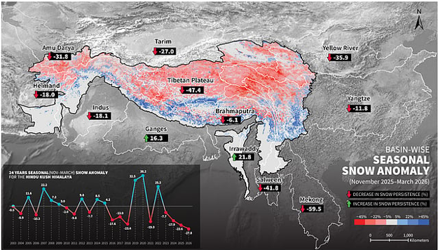 Context: The Hindu Kush Himalaya (HKH) Snow Update 2026 by the International Centre for Integrated Mountain Development reports a record decline in snow persistence, raising concerns over a regional water crisis.