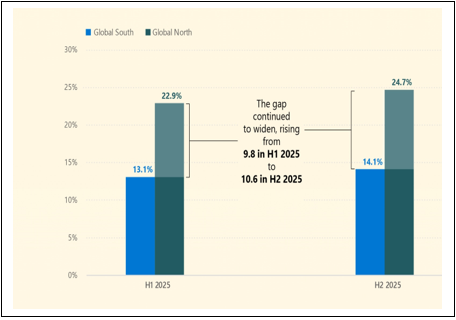 - Widening AI adoption gap: AI adoption in the Global North is growing nearly twice as fast as in the Global South.
