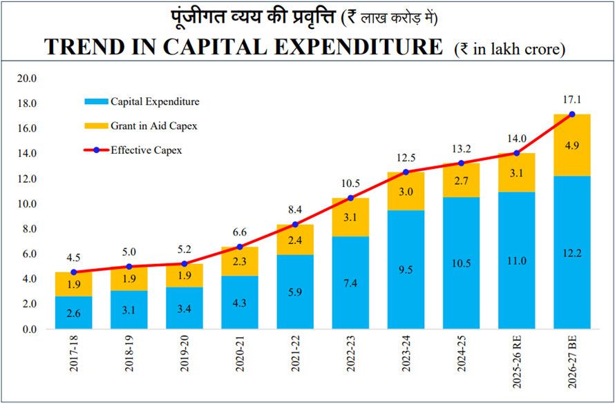 - Public capital expenditure increased to ₹12.2 lakh crore in FY 2026-27.