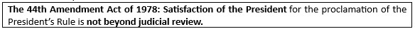 It introduced a new provision, beyond one year, the President’s Rule can be extended by six months at a time only when the following two conditions are fulfilled: