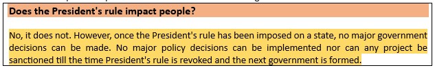 If approved by both the Houses of Parliament, the President’s Rule continues for six months.