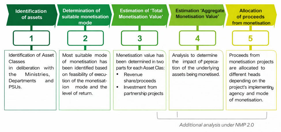 • Stages of Asset Monetisation: The approach to estimation of monetisation potential under NMP 2.0 is divided into five stages: