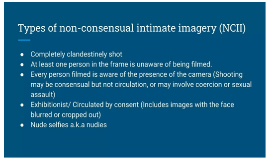 - NCII is a criminal offence under Indian laws like the IT Act, 2000 (including Sections 66E, 67 and 67A), the Indecent Representation of Women Act, 1986, and relevant provisions of the Bharatiya Nyaya Sanhita, 2023.