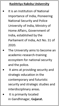 Context: Recently, the Defence Research and Development Organisation (DRDO) and Rashtriya Raksha University (RRU) have signed a Memorandum of Understanding (MoU) to enhance collaboration in research and development (R&D) for defence and internal security.